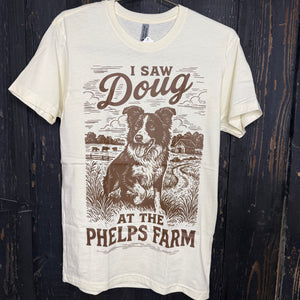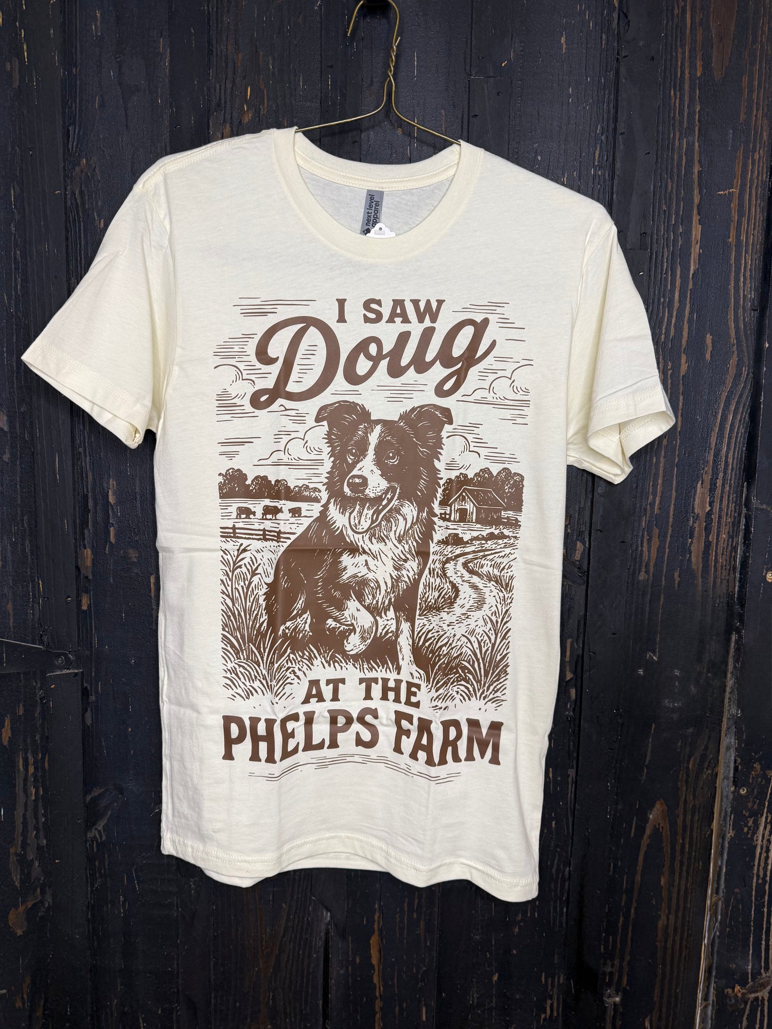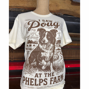 Meet the farm’s most famous face — Doug! David & Lori Phelps’ beloved border collie has become the unofficial mascot of The Phelps Farm, winning hearts with his charm and loyal sidekick energy. Now you can take a piece of Doug home with this classic tee, featuring a hand-drawn design of Doug against the backdrop of the farm.