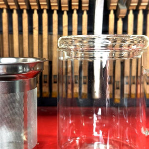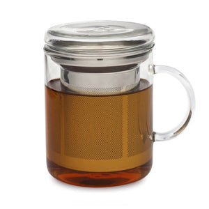 An ideal 'have tea anywhere' set that combines a glass cup with a removable metal infuser. In addition to being convenient, it is also loads of fun: Watch the leaves dance as they infuse a perfect cup of tea. When done, remove the infuser (the cover doubles as a coaster) and have a perfect cup of tea wherever, and whenever, the mood strikes. Perfect for home or office use.