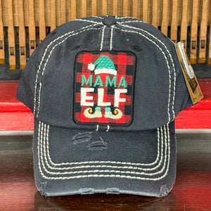 Show off your holiday spirit with a wink and a little sass in our Mama Elf Hat. This festive cap features a red-and-black buffalo plaid patch with embroidered elf details and playful lettering — the perfect nod to every hardworking holiday helper. The distressed fabric and frayed patch give it that cool, lived-in look you’ll love all season long.