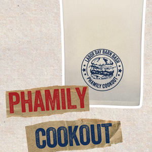 Measuring 27” x 27”, it features the official “Labor Day Barn Bash – Phamily Cookout” graphic, making it a thoughtful gift or keepsake from a memorable event. Use it to dry dishes, line a bread basket, or simply display it as part of your holiday décor.